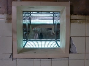 換気扇下処理 既存タイル上にキッチンパネルを貼っていきます。