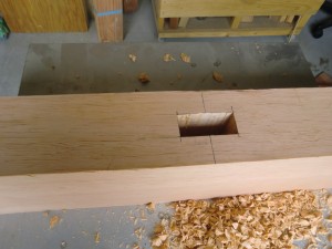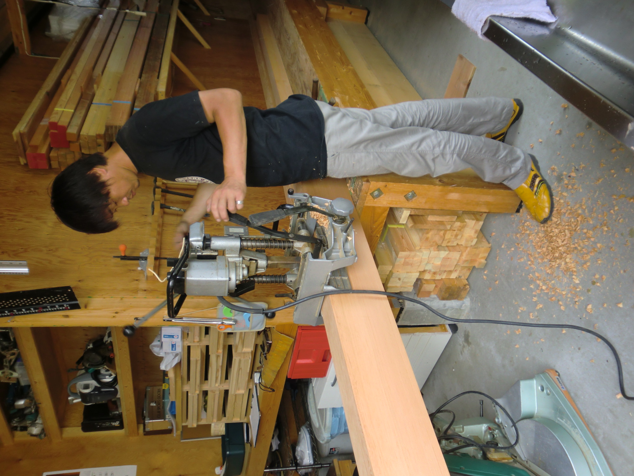 木材(ピーラー)の柱のホゾ穴を製作していきます。