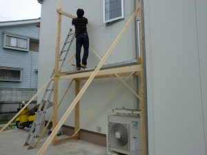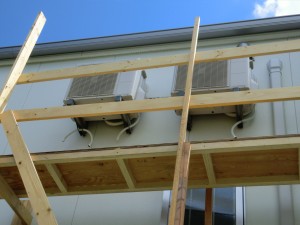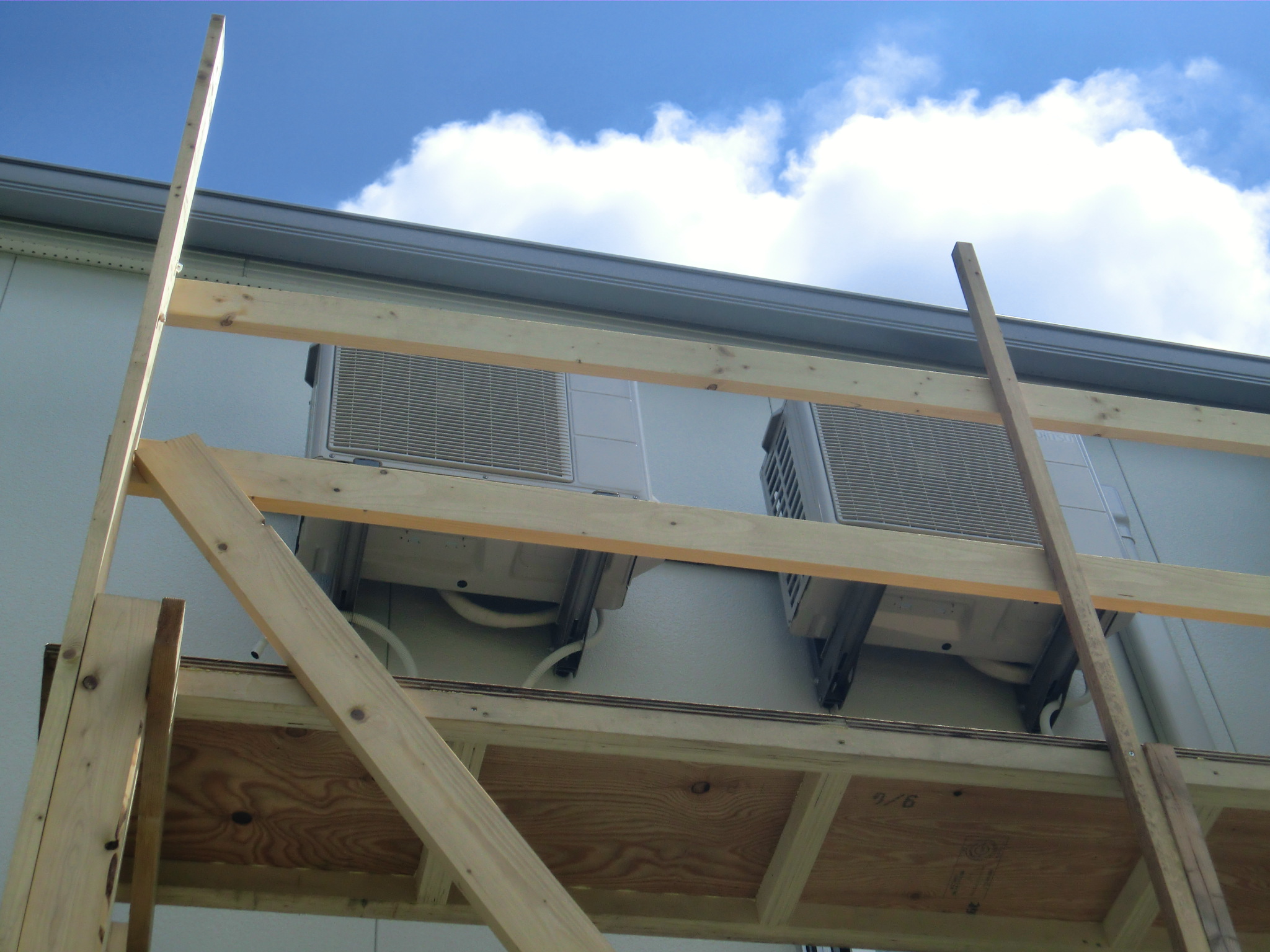 まず、室外機を2階に設置するための足場を作成しました。