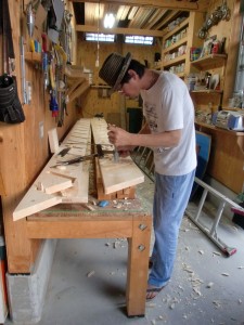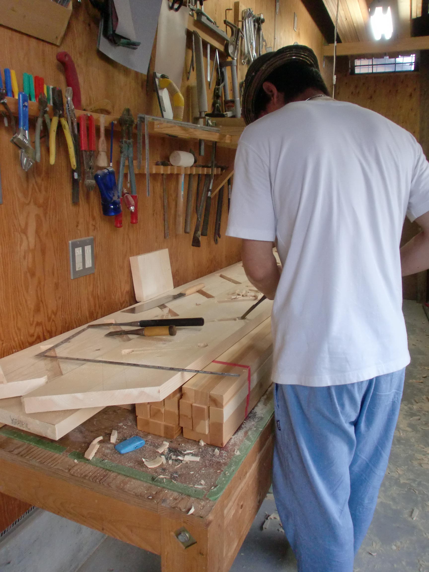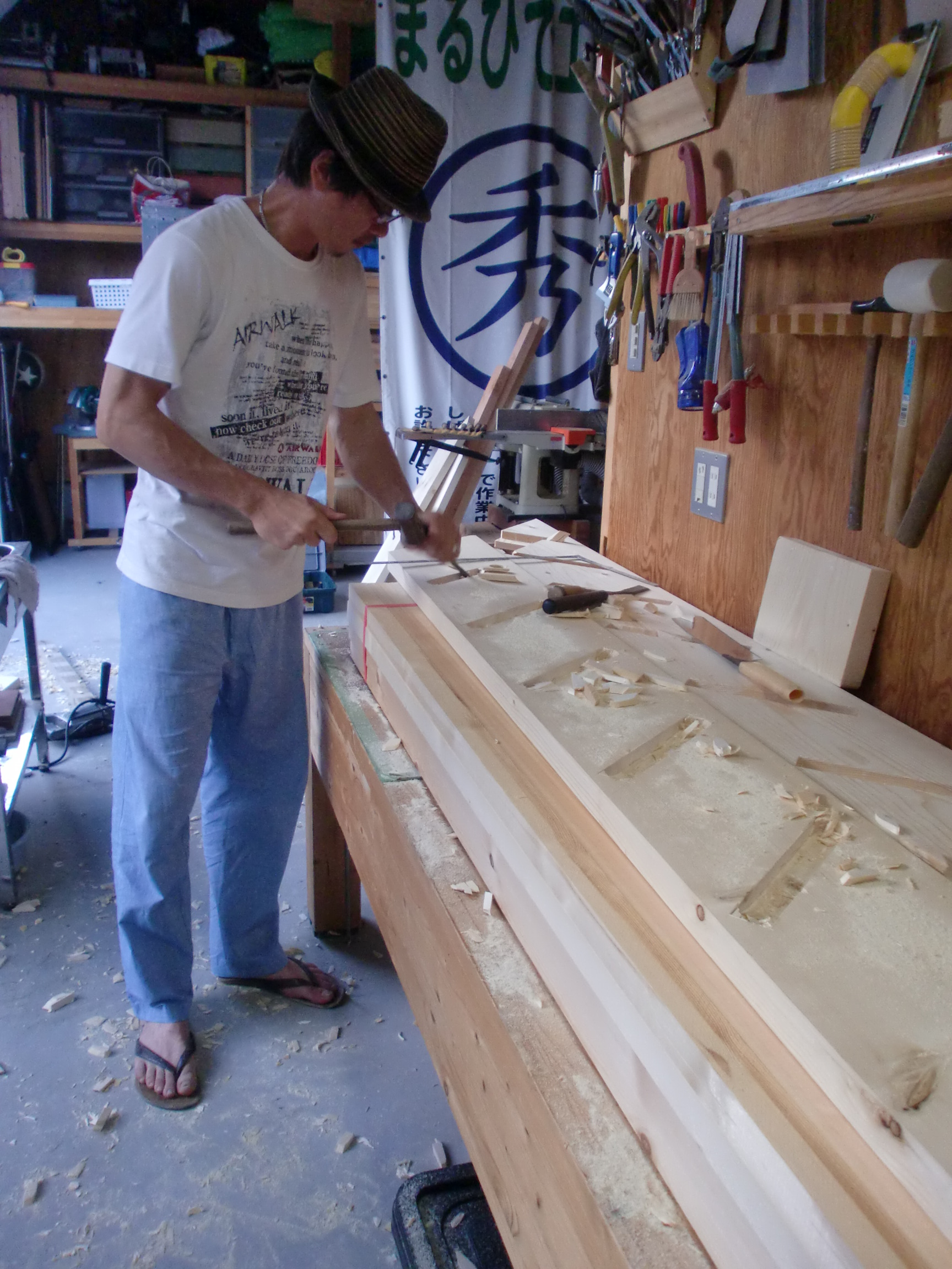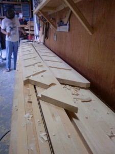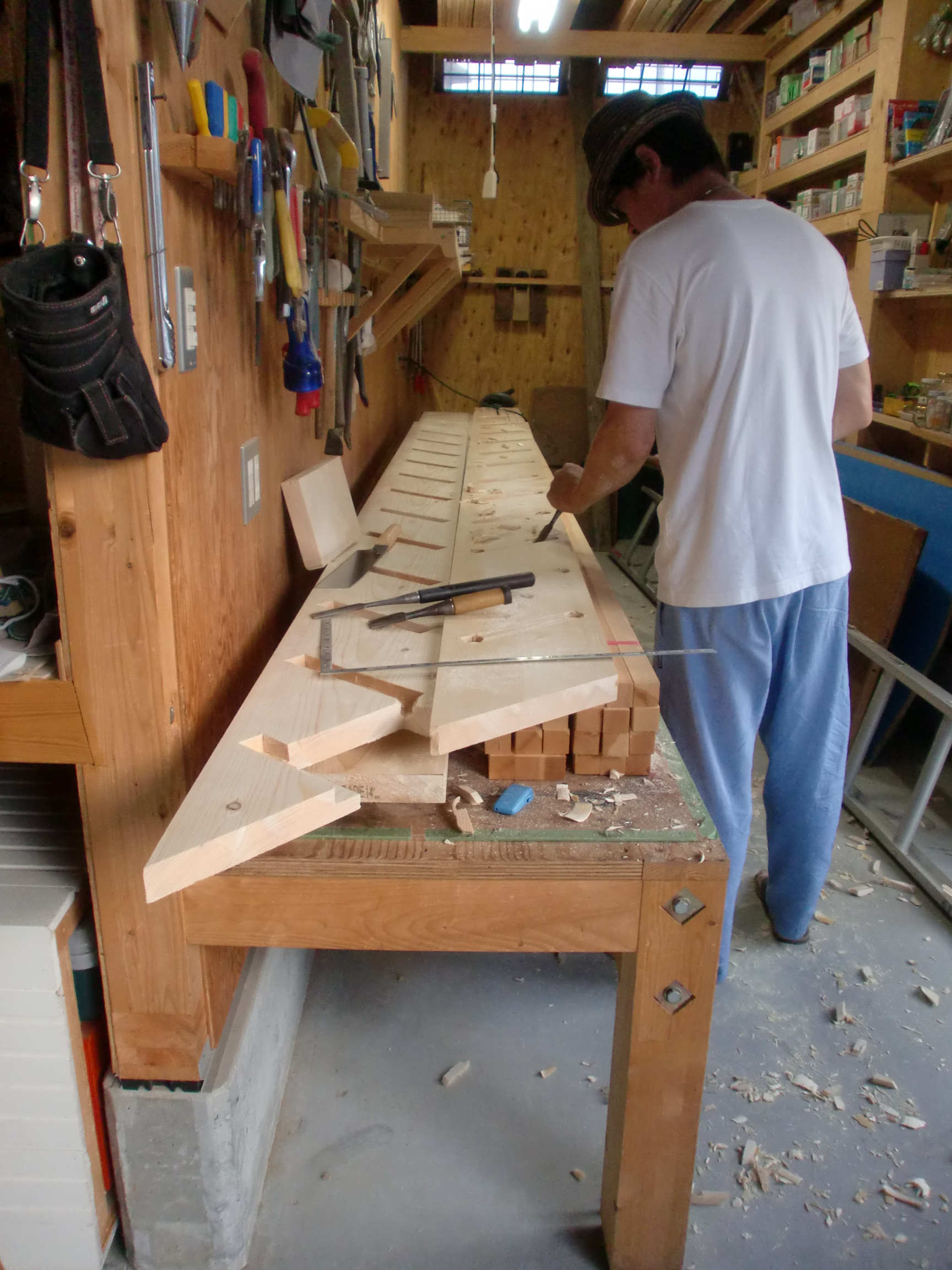 今日は工房で階段作りです。
